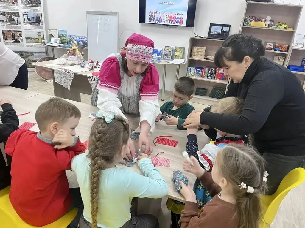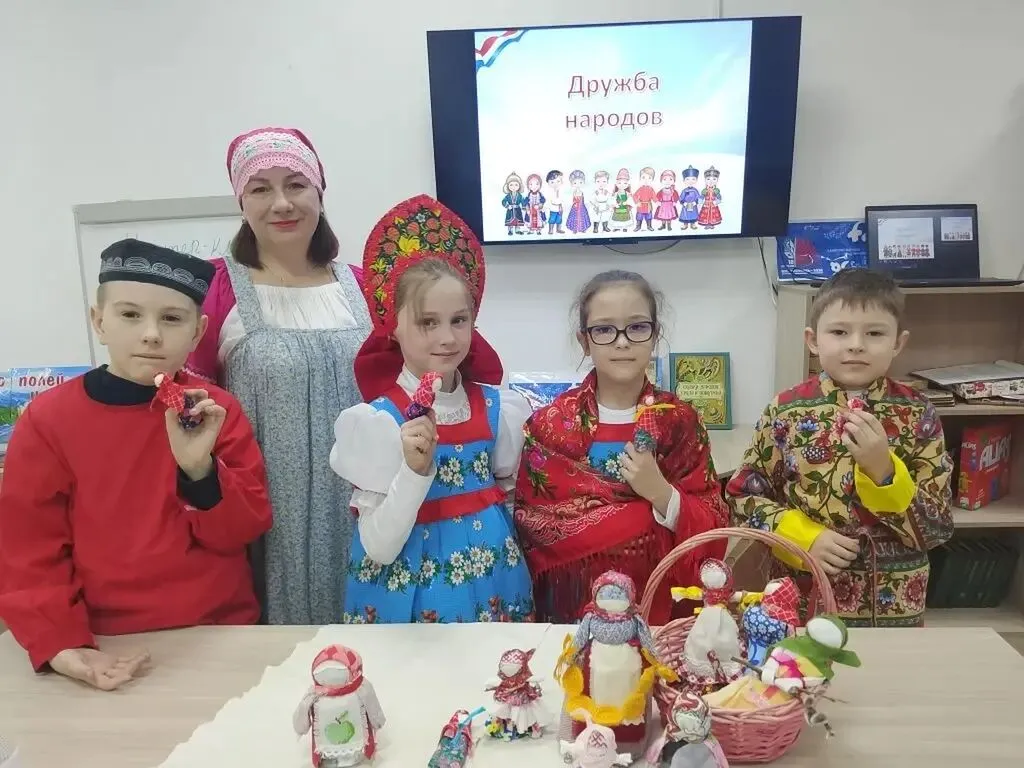 Юные мастера скатывали ткань в аккуратный шарик – головку, оборачивали белой тканью, завязывали узелки на разноцветных лоскутках ткани. Со старанием наряжали куколку в сарафан, на голову надевали платок и повязывали красивой лентой. У каждого получилась своя текстильная куколка. Пусть она станет лучшим другом, а кому -то поможет познакомиться с новыми друзьями!